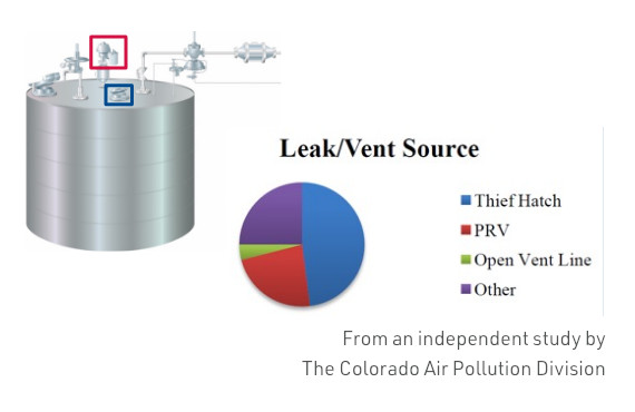 A common industry issue is when thief hatches are unintentionally left open. Puffer can resolve these issues by remotely monitoring tank top pressure control assets, and employ software to estimate tank pressure and vacuum venting volumes.