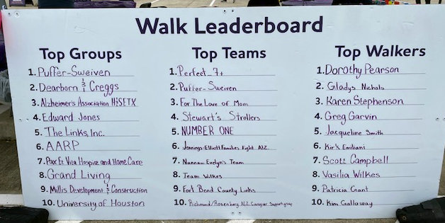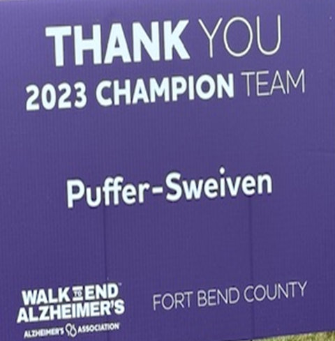 Team Puffer raised $7,757 for the Fort Bend Chapter and our own Karen Stephenson was once again recognized as a Champion Walker for her fundraising efforts.