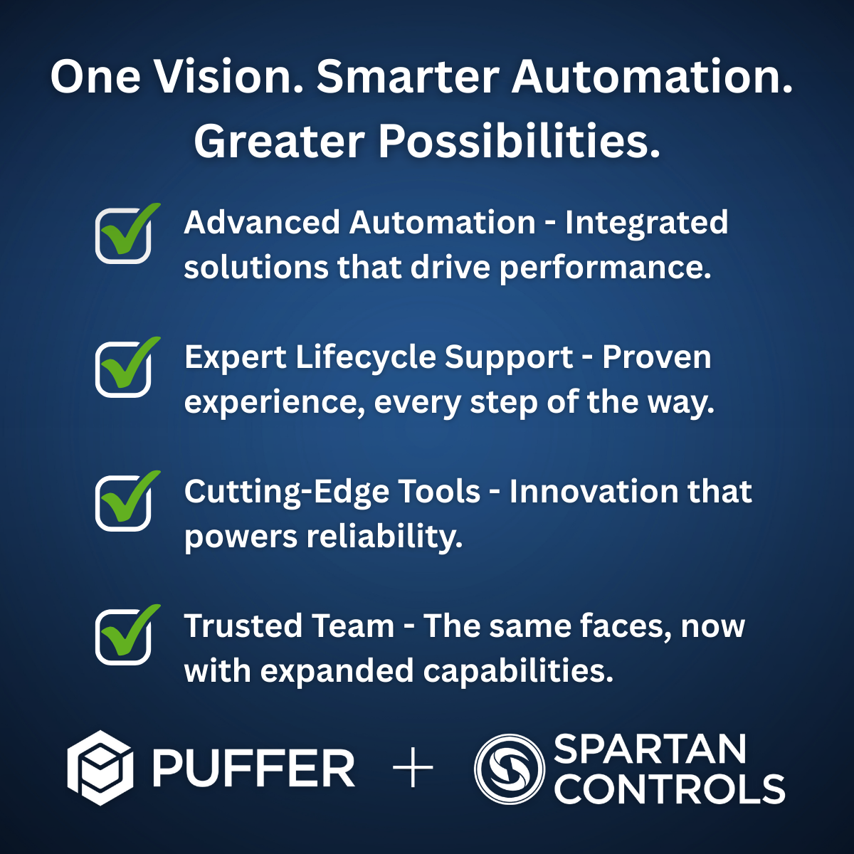 As part of this exciting launch, Puffer has partnered with Spartan Controls to bring even greater value to our customers. This strategic collaboration enables both companies to share expertise and resources, accelerating the delivery of advanced automation solutions across Texas, the Caribbean, and Latin America.